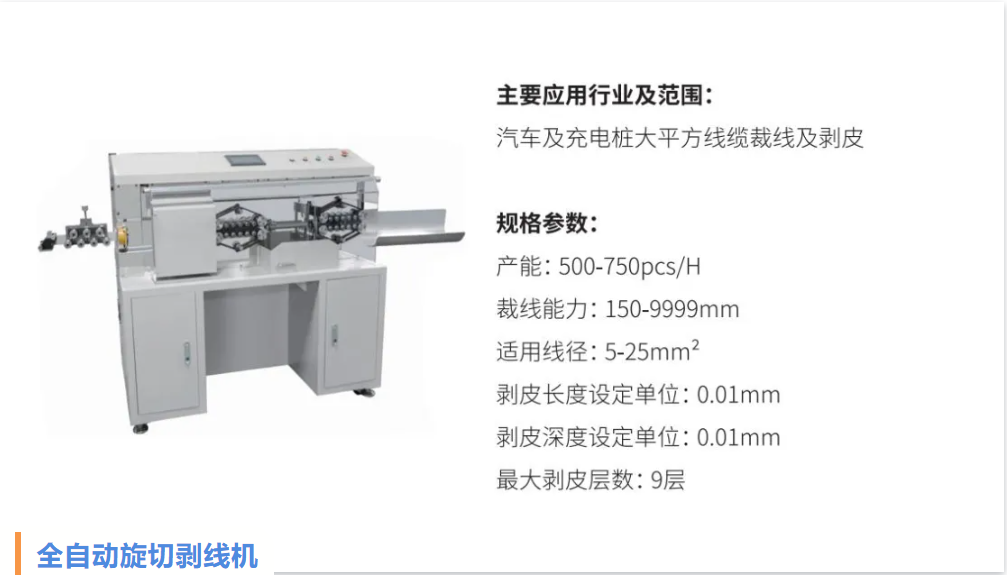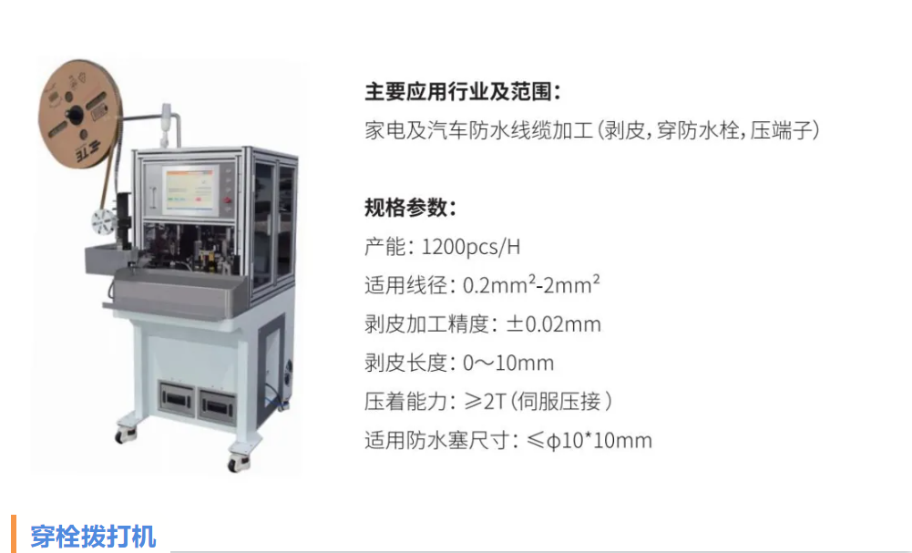 在典型设备应用上,重点展示了用于汽车电子电气系统的穿栓拨打机以及全自动旋切剥线机。